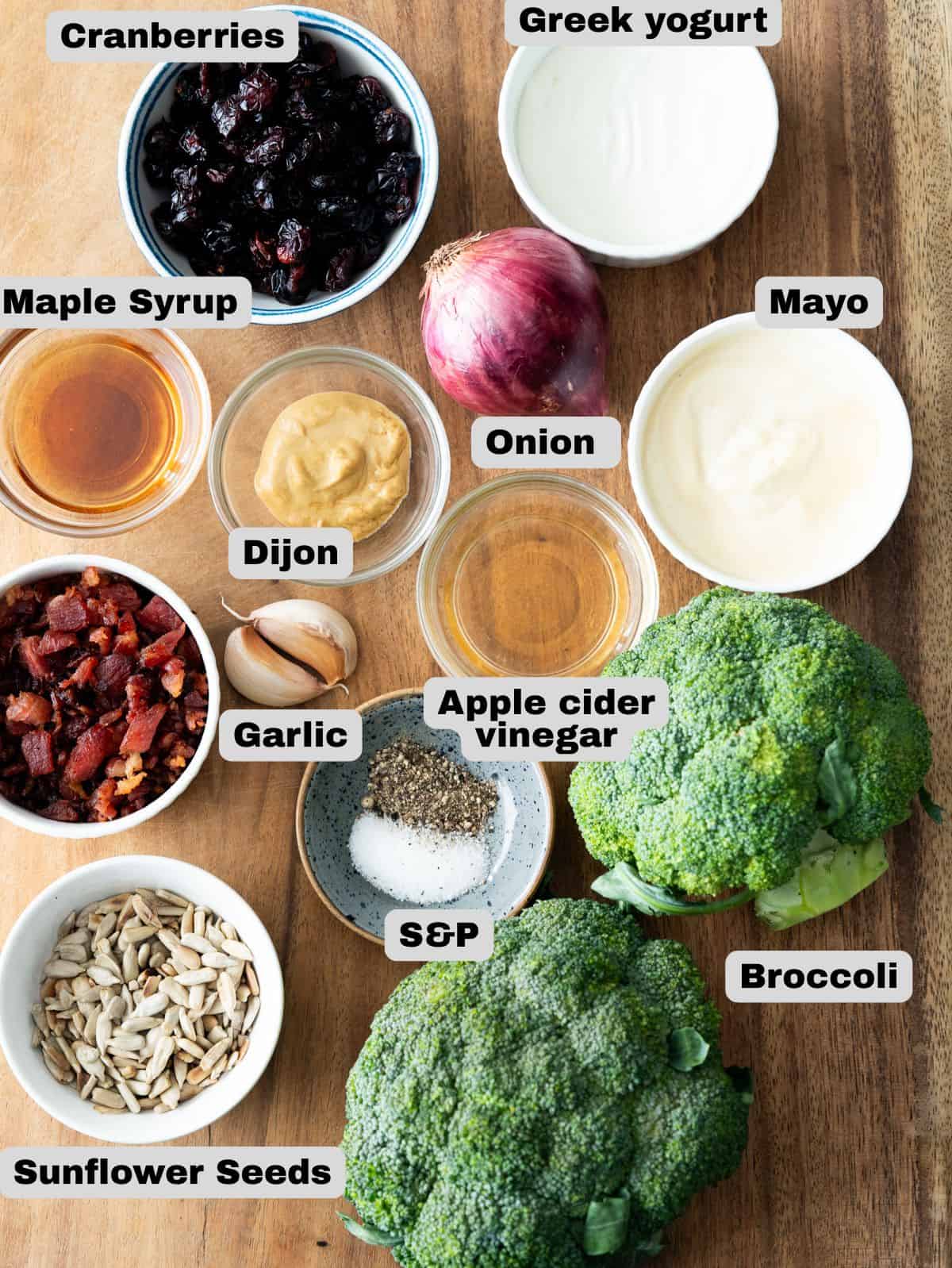 This winter salad recipe takes a healthy vegetable like broccoli, adds flavor-powers like bacon and onion, and makes it interesting with cranberries and sunflower seeds. It also has a light yogurt-based well-balanced dressing made with greek yogurt, little mayo, vinegar, mustard, and garlic.
