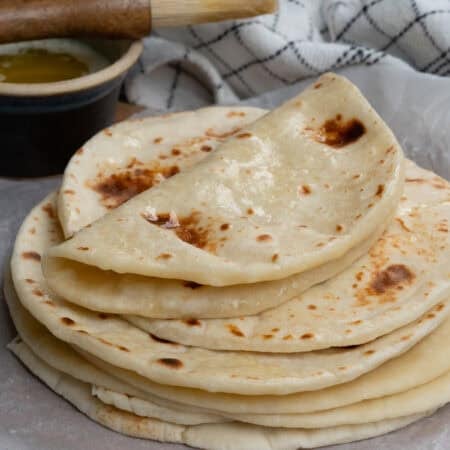 Reaching out a packet of flour tortillas is always convenient. But once you start making at home with simple, clean ingredients, you will see the world of difference in taste. I am not claiming that making tortillas at home is easy; you definitely need some practice to get the dough consistency right and roll them thin enough. I have been making them forever, and I will share a few tips that will help you navigate through any issues and get the best results.