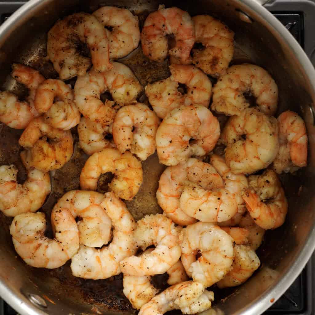 - To the bacon fat, add shrimp and saute over high heat for about 2-3 minutes.