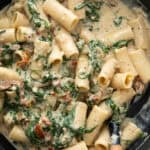 Pasta with lots of spinach and creamy sauce using garlic, parmesan, cream cheese and Italian season. Delicious creamy pasta with healthy Spinach makes a perfect dinner.